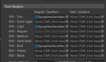 기존 Regular 폰트의 설정창에서 Bold 에 Bold 폰트 넣기